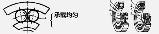- 调心轴承的外圈滚道是球面,能自动补偿两滚道轴心线的角偏差,保证轴承正常工作。