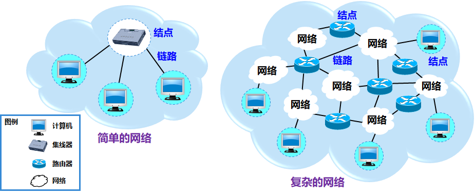 - 较好的定义: 计算机网络主要是由一些通用的、可编程的硬件互连而成的,而这些硬件并非专门用来实现某一特定目的(例如,传送数据或视频信号)。这些可编程的硬件能够用来传送多种不同类型的数据,并能支持广泛的和日益增长的应用。