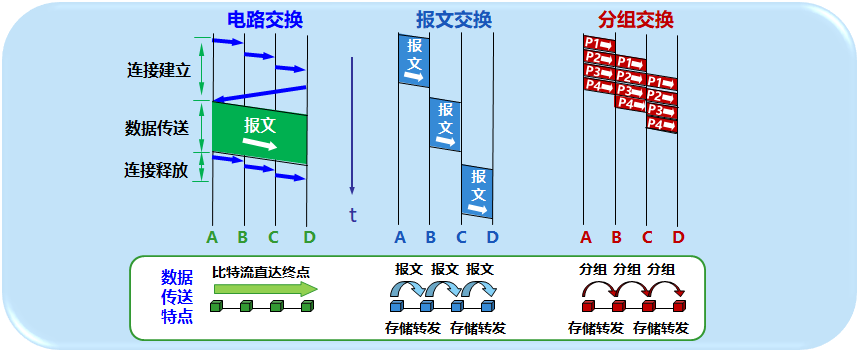 - 连接建立和释放:交换数据前先建立一条逻辑连接,数据传送结束后释放连接。