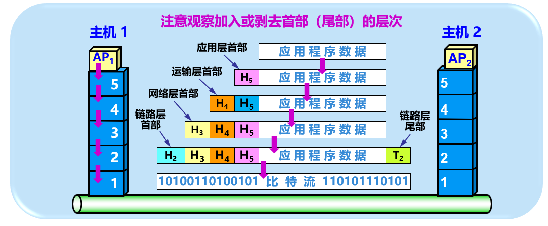 - 各层协议实际上就是在各个对等层之间传递数据时的各项规定。