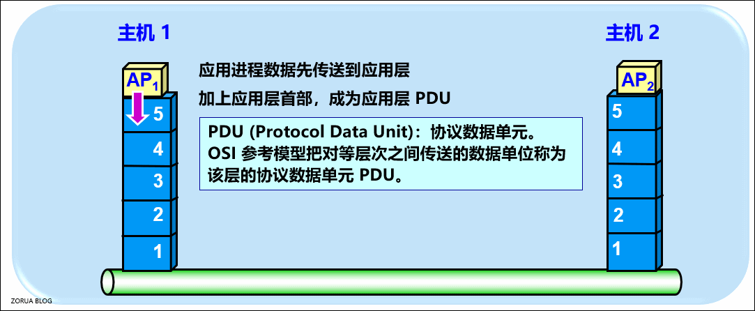 - OSI 参考模型把对等层次之间传送的数据单位称为该层的协议数据单元 PDU (Protocol Data Unit)。这个名词现已被许多非 OSI 标准采用。