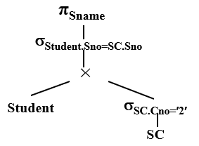 | SELECT Student.Sname FROM Student, SC WHERE Student.Sno=SC.Sno AND SC.Cno='2';