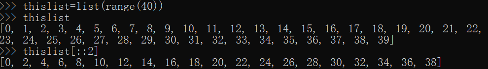 上图的示例是创建了一个0-39整数的列表,然后以step=2来切分出了其中的偶数。
