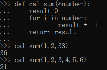 1 | def cal_sum(*number): |