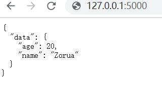 | jsonify({'data':{'name':'Zorua','age':20}})