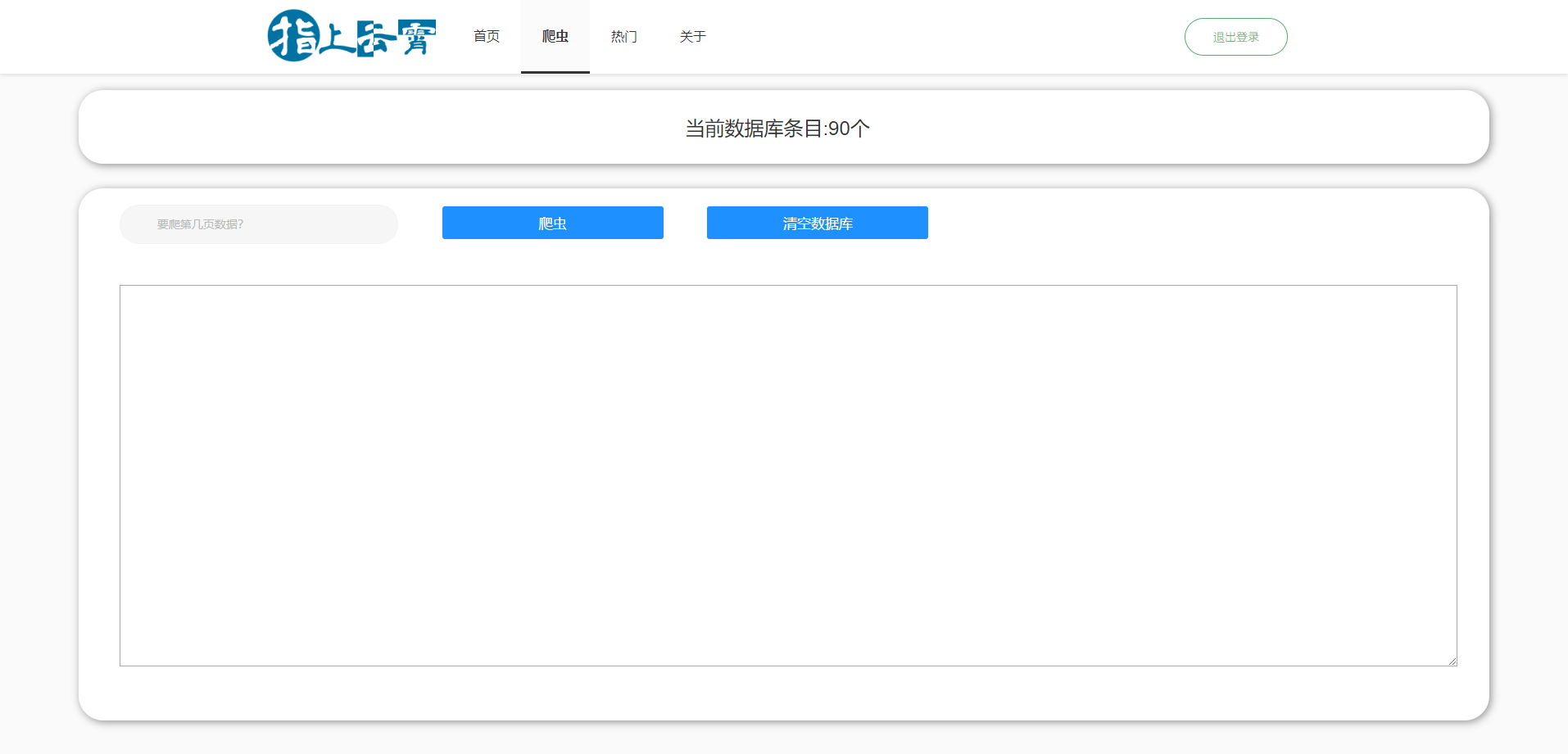 在文本框填入要爬取数据的第几页,点击爬虫,即可爬取数据。