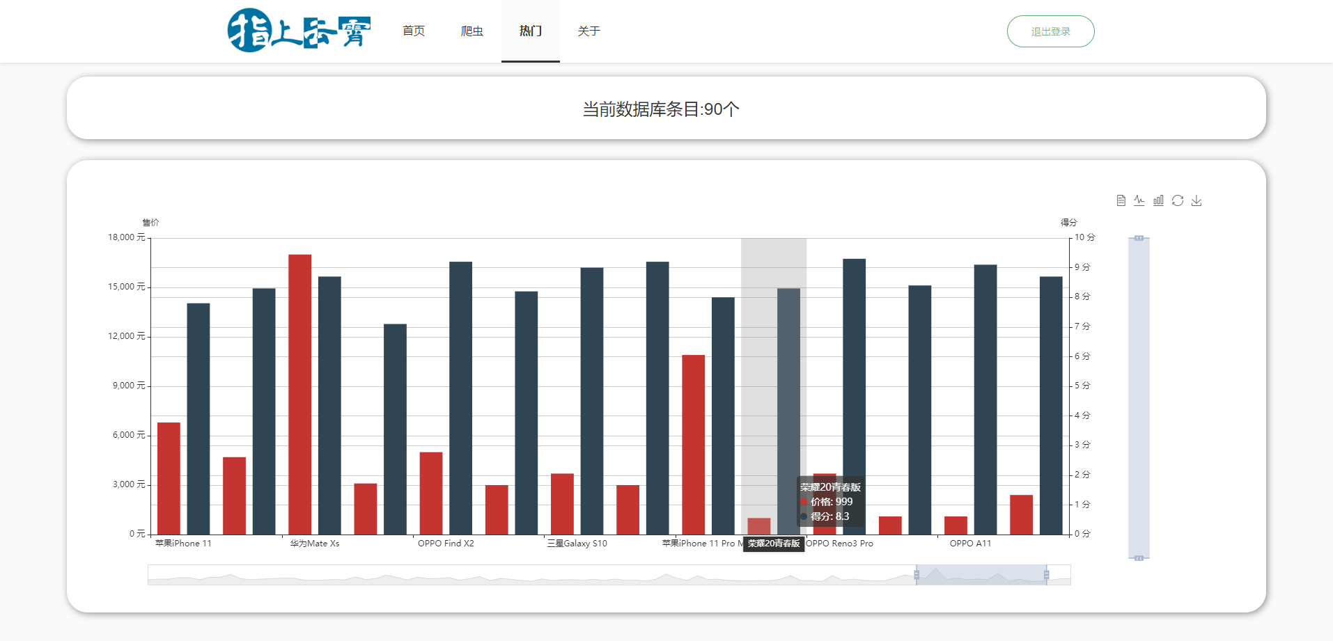 该页面将会呈现数据库中所有条目的售价以及得分状况。通过调节图像四周的工具,可以获取不同的信息。