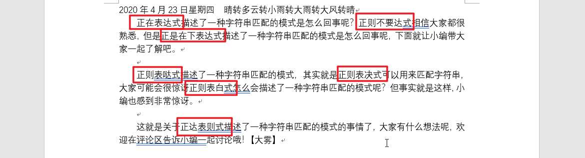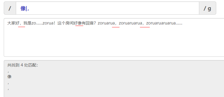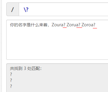 例如下面这个例子。我在编辑这篇文章时,发现我居然蠢到把每一个正则表达式都打错了。只有第一个字和最后一个字是正确的。