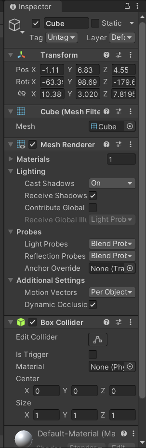 在Scene窗口中选中物体后,可以在这里修改它的属性。