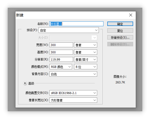 新建一张大小为300x300的条件,这个大小是我根据自己的需要设定为标准的。
