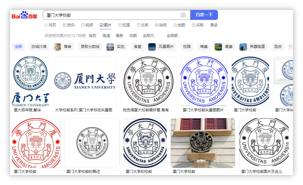 打开百度搜索合适的校徽素材,一般要求就是清晰,背景简单不复杂。