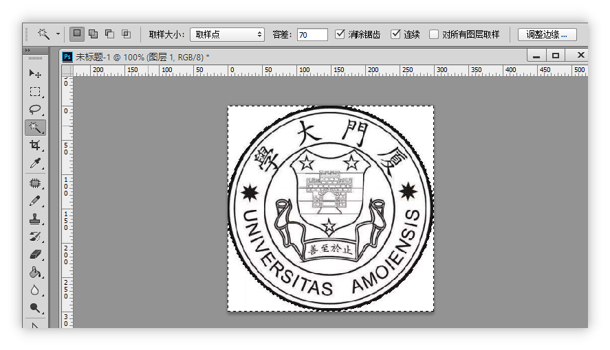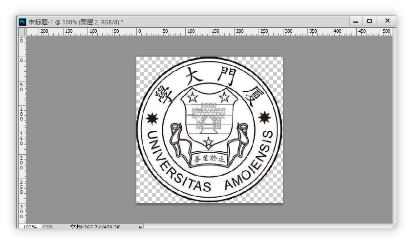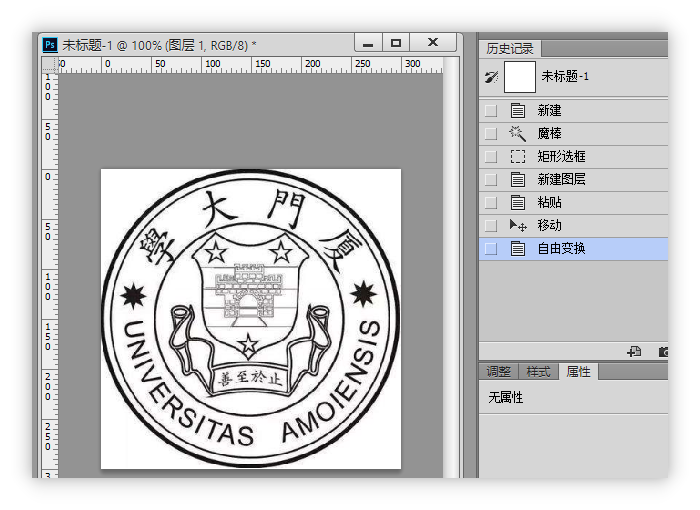 粘贴至Photoshop中后,用自由变换调整大小,使得校徽刚好内切于这个正方形。就像下面这张图所呈现的一样。