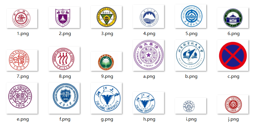 不过这其中有一个问题是,这些院校的校徽素材网上并没有现成的,所以还得我自己来进行处理。