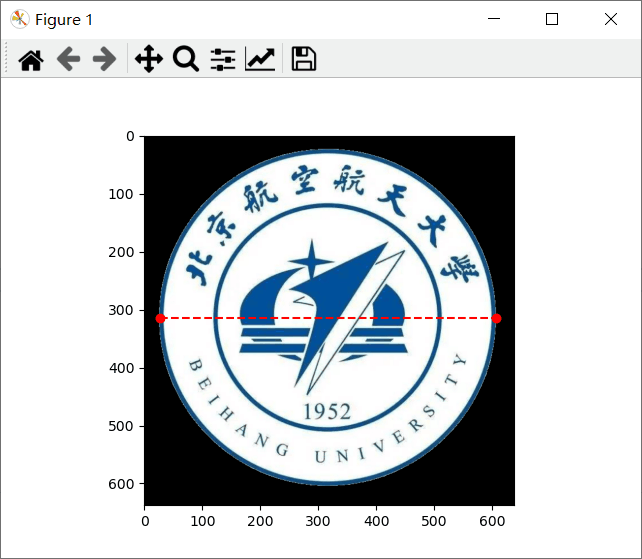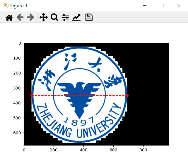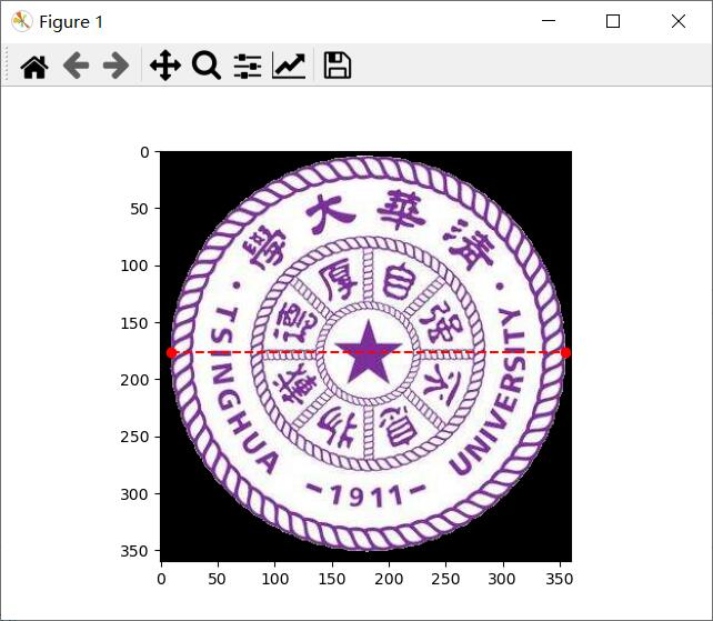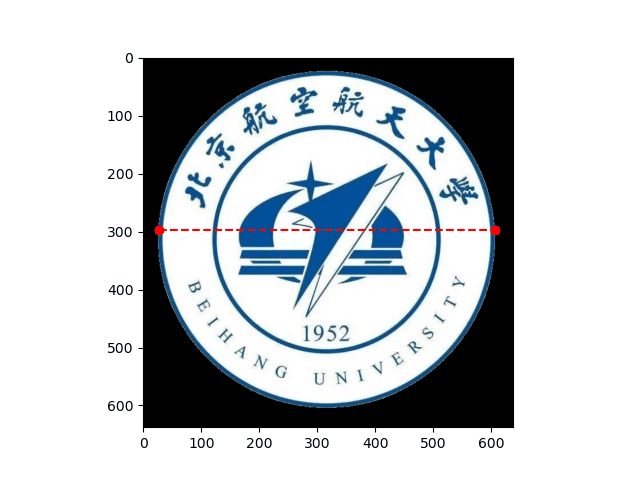 1 | plt.plot([ansl,ansr],[ansx,ansx],"r--o") #画出直径 |