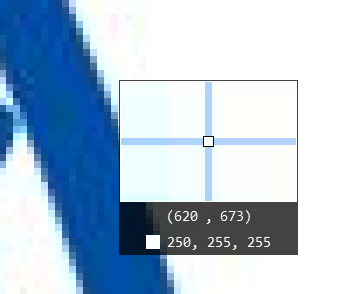 这是因为周边那些像素点其实都不是真正的“白色”。如下图所示,这个点虽然看上去是白色,但不是的白色,而程序在判断该像素点是否为白色像素点时,又是直接比对的RGB值。那么有什么好的解决方法吗?我选择引入颜色距离。(我不知道是否还有更好的方法,在这里我姑且这样做了)
