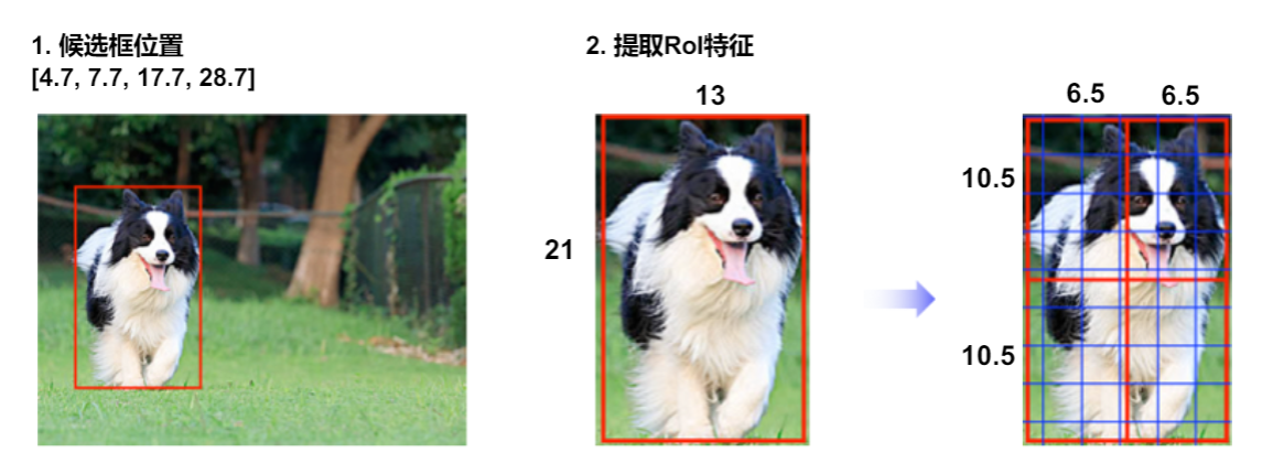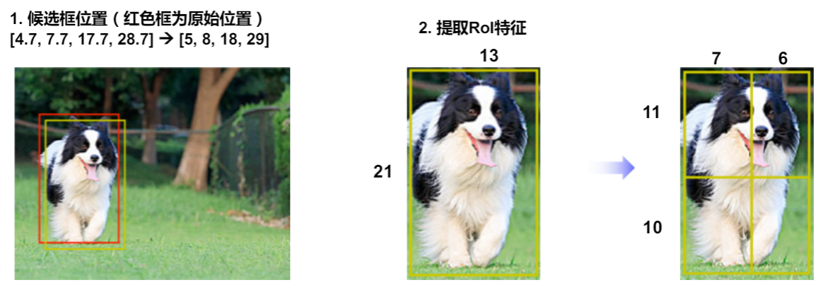 - 候选框的位置取整。当RoI位置不是整数时,RoI的位置需要取整。
