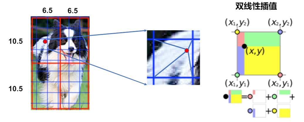 在区域内均匀的取N个点,找到特征图上离每个点最近的四个点;再通过双线性插值的方式,得到点的输出值。最后对N个点取平均得到区域的输出。