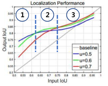 RoI 自身的 IoU 和训练器训练用的阈值较为接近时,训练器的性能最优。