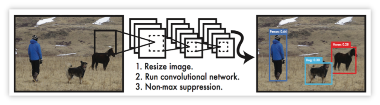 - 将目标检测当做一个单一的回归任务,仅使用一个卷积神经网络端到端地实现检测物体的目的。